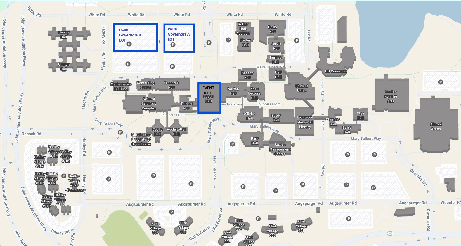 You will see Fronczak A and B lots first – Governors A and B are immediately behind those lots.